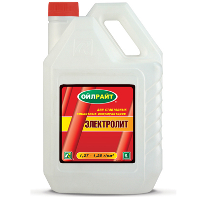 "Готовый к применению кислотный электролит предназначен для заливки в тяговые и стартерные аккумуляторы. Произведен на основе высококачественной серной аккумуляторной кислоты и дистиллированной воды высокой степени очистки.Отличительные особенности: