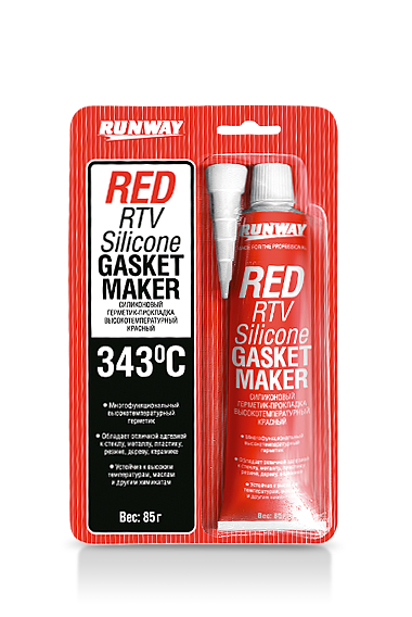 Высокотемпературный силиконовый герметик-прокладка RUNWAY предназначен для быстрого ремонта узлов и агрегатов, работающих в условиях повышенных температур и постоянном контакте со смазочными материалами. Используется для клапанной крышки двигателя, водяной помпы, термостата, дверей и крышки багажника, трубопроводов, глушителя. Герметик прокладка заполняет мельчайшие трещины, обладает хорошей адгезией, эластичностью и упругостью. Герметик устойчив к воздействию атмосферных осадков и химикатов, не подвергается коррозии. Диапазон рабочих температур от -62 до +343°