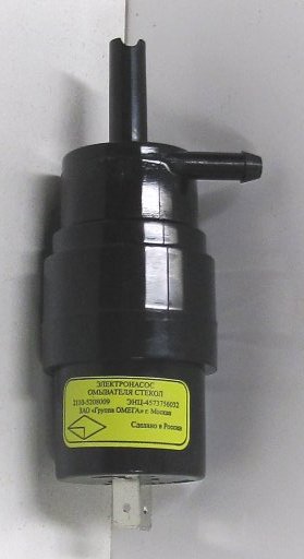Питание электронасоса омывателя стекол 2110-5208009 осуществляется от бортовой сети автомобиля, с номинальным напряжением 12 В, отрицательный полюс которой соединен с корпусом.