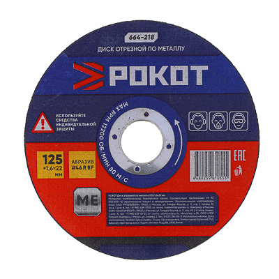 Круг отрезной по металлу 125 х1,6 х22 РОКОТ Круг отрезной по металлу 125 х1,6 х22 РОКОТ