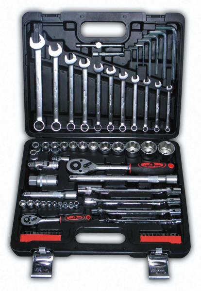 Набор инструментов 77 предметов состоит из:9 торцевых головок 1/4": 4, 5, 6, 7, 8, 9, 10, 11, 12 мм